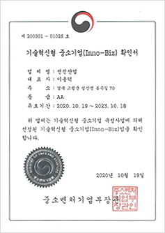 | 조달업체등록: 농기계 제조, 관람석 의자 제조, 자동차 부품 | 2011.09.21 |